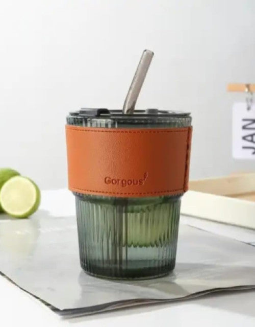 Glass Tumbler with Lid & Glass Straw Pack of 1, 450ml